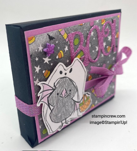 This quick Halloween Treat Box uses the box die from the Jolly Delivery Bundle and some of our Sweet Halloween designer series paper.